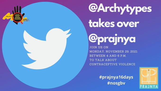 Today, I (@Archytypes) am taking over this account to discuss ‘Contraceptive Violence’ as part of #Prajnya16Days of #NoSGBV (29/11/2021, 4:00PM)